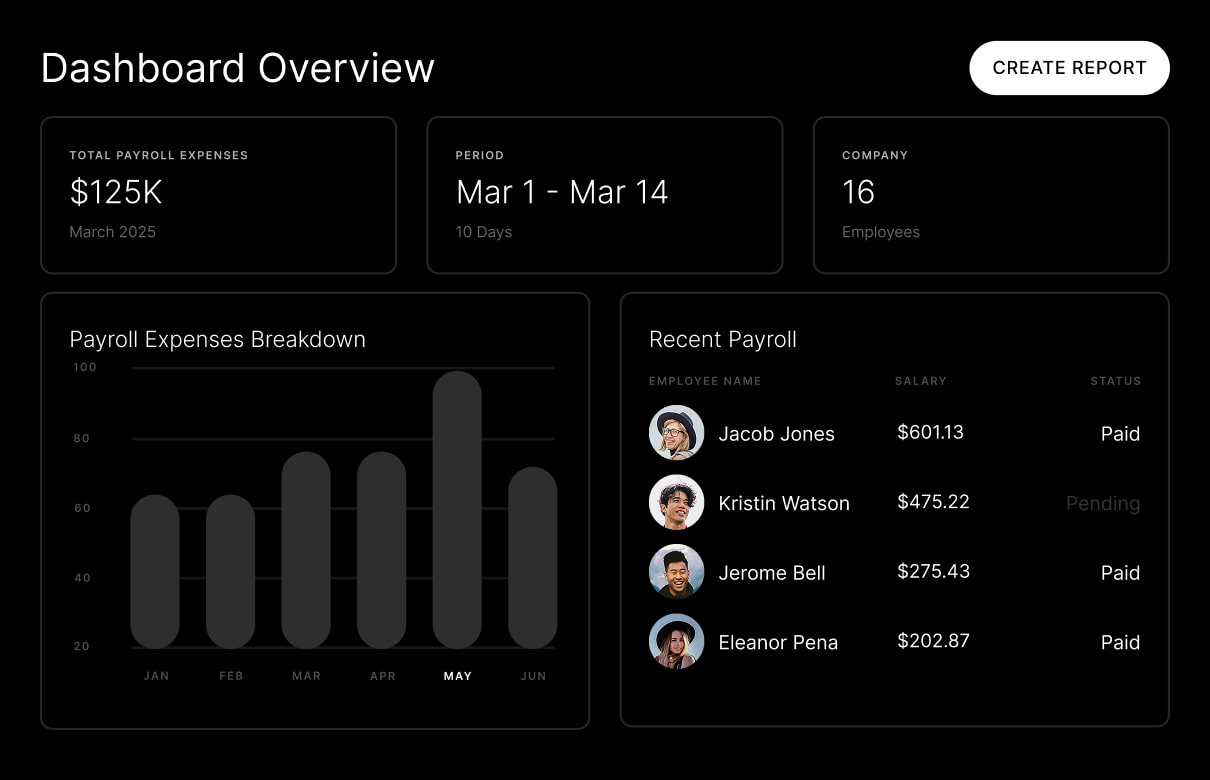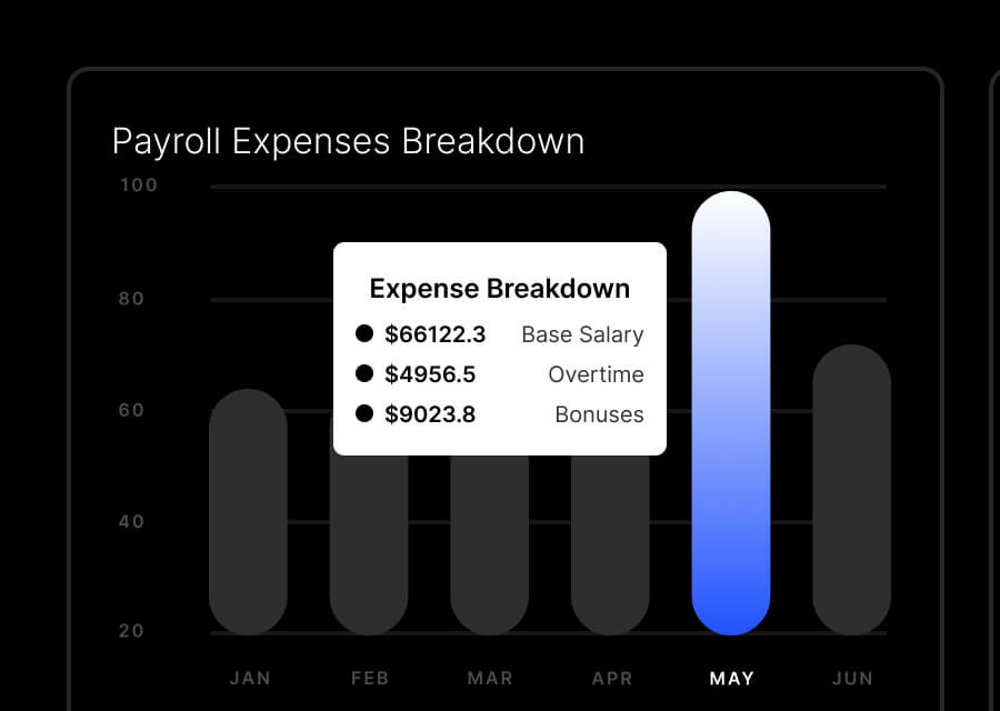 Get instant insights into payroll costs, taxes, and employee earnings.